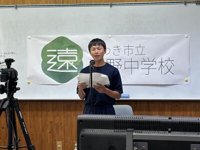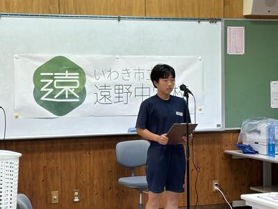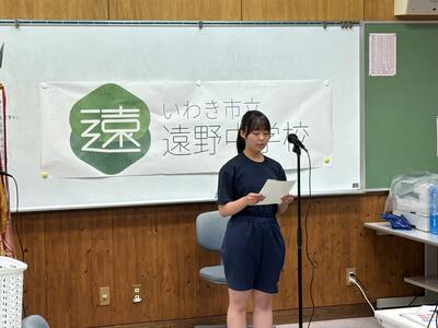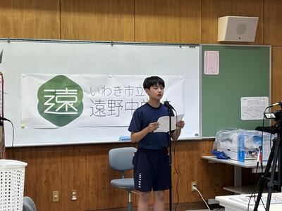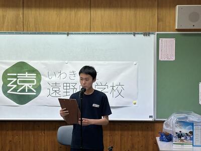 「僕の母校」と題した弁論では、昨年度末に閉校となった入遠野中学校の現状に触れ、地域と子どもたちを繋ぐ温かい場所であった入遠野中学校を、そして今後一層増えていくであろう同じような状況の学校を、利活用し、明るく魅力ある町作りに繋げる必要性を述べました。実際に経験したこと、そこから感じたことを、聴く人に語りかけるように落ち着いて話す姿は、大変堂々としており立派でした。