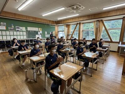本日の全校集会は、暑さ対策のためオンラインで実施しました。
