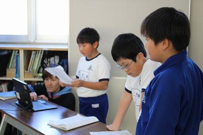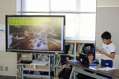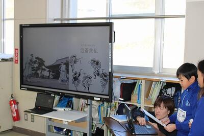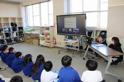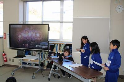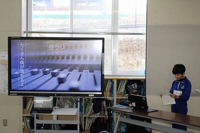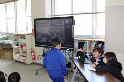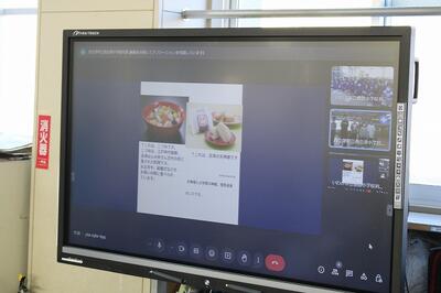 お互いの学校や特産物等を紹介しました。後半には各学校へ質問をしたり、感想を伝えたりしました。短い時間でしたが、他校の友達とつながって学ぶ貴重な機会となりました。