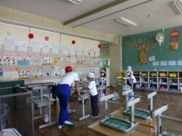 今年度から豊間小学校では、1年生から6年生までの縦割り班を編成してお掃除を行っています。どの班も、みんなで協力しながら校内をきれいにしようと頑張っています。上学年の児童が下学年の児童と一緒に机を運んであげたり、掃除の仕方を丁寧に教えてあげたりしている様子はとても頼もしく感じます。