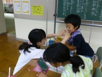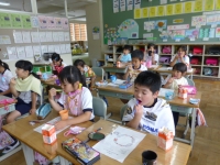 6月の保健目標は、「歯を大切にしよう」です。学年ごとに歯科指導を実施し、むし歯や歯肉炎の予防について学習しました。また、カラーテスターで、みがき残しを赤く染め、これから特に気をつけて磨かなければならない箇所をチェックしました。