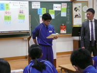 第1部は、周さんとスタッフの生方さんのリードで体育館での活動です。まず、周さんと卓球のラリー。オリンピック選手はすごいです。次に,ゲーム形式のエクササイズ。考えながら身体を動かすことが大事ですね。第2部は、周さんからオリンピックに出場するまでの努力と夢にかける気持ちや考え方などのお話を聞きました。夢の実現に向けて3つのこと、①「夢があるのは幸せなこと」②「夢があるから頑張れる、我慢できる」③「夢をかなえるには感謝の気持ちを忘れないこと」は、あらゆる場面でとても参考になることだと思います。生徒たちが夢を探し、実現に向けて歩んでいくことで、人としてのパワーが身についていくと思います。とても貴重な時間でした。