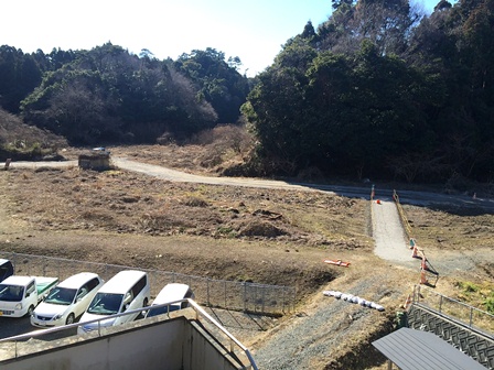 2015年1月28日 12時56分豊間中の校舎が今後建設されるに当たり、下準備として今週の月曜日から、校舎の南西部分の草刈と木の伐採が始まりました。