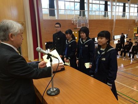 昨日、中学校3年間無欠席の生徒に対して校長先生から『皆勤賞』が贈られました。