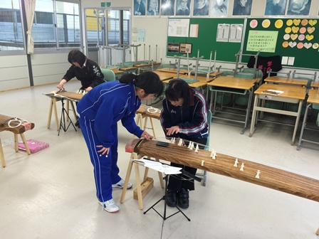 筝曲部を覗いてみると、今日は中2女子生徒1名しか活動していません。そこに顧問の先生が2名。