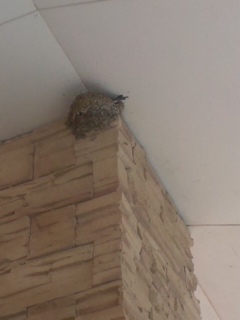 先週から燕のつがいが来て、巣の修繕をしていましたが、昨日あたりから一羽がずっと巣にいます。(尾羽が見えます)