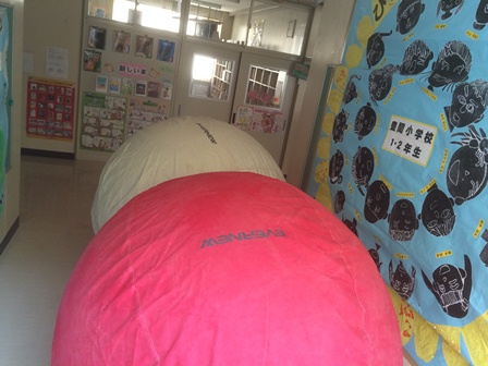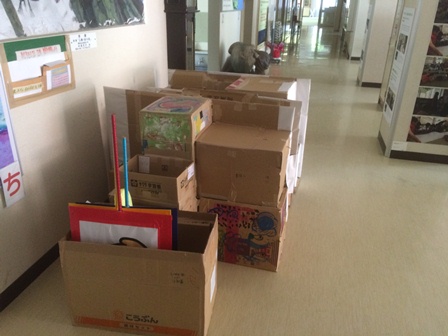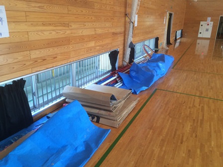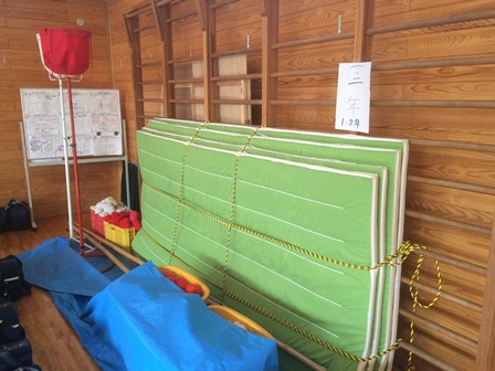 校舎や体育館のあちらこちらに明日使用する準備物が置いてあります。