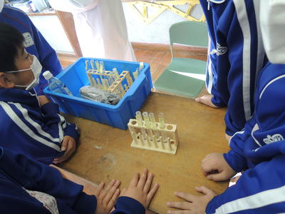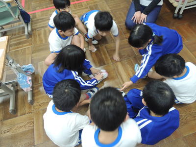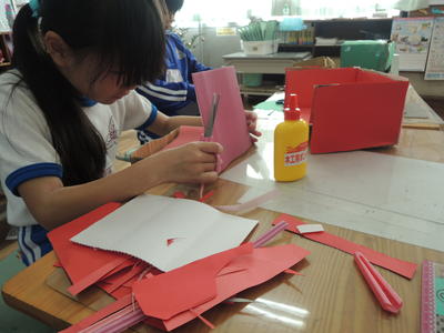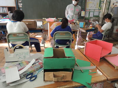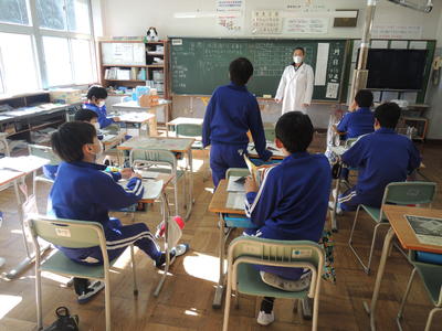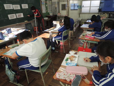 1校時の授業の様子を紹介します。1年生は、10時00分に来校する綴保育所との交流会の準備をしていました。