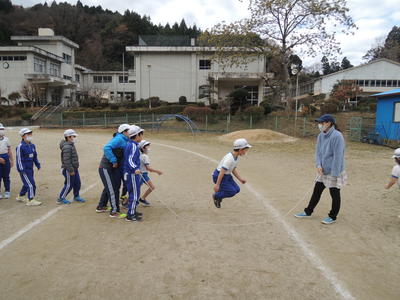 本日の業間運動は長縄とびです。学年ごとに3分間で何回とべるのか。数を数えながら、みんな本気です。
