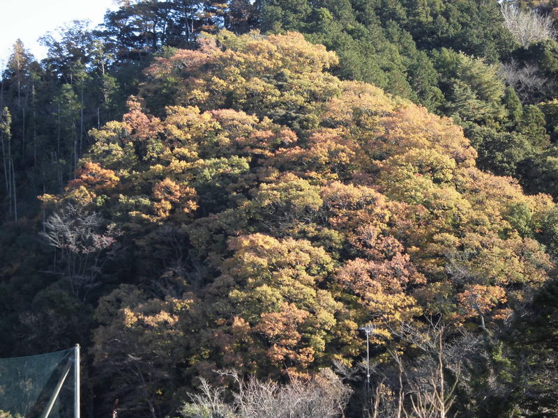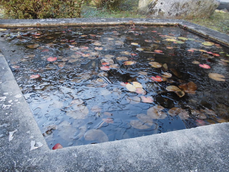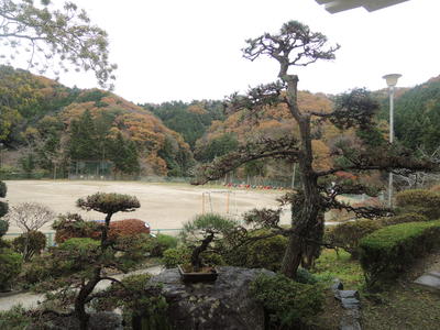 2019年11月29日 09時09分とても寒い朝でした。学校の池には、氷がはりました。山の木々も美しく色づきました。いよいよ12月になります。