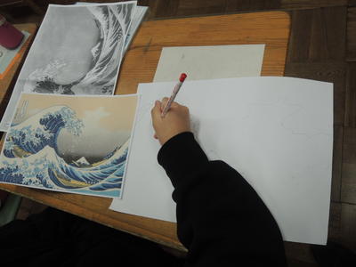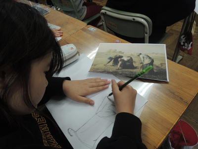 2019年12月2日 14時25分第5学年 図画工作科 版画の下絵を丁寧に描いています。