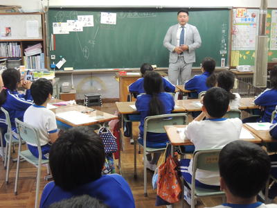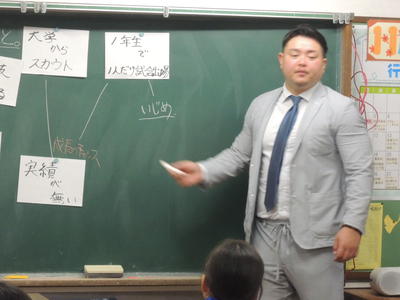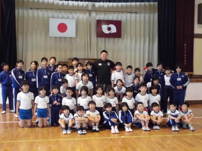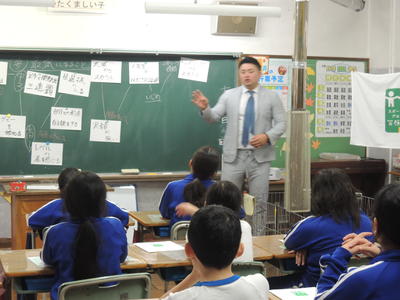 元ラグビー選手であり、日曜劇場『ノーサイド・ゲーム』(TBSテレビ)にも出演されたことのある株木孝行氏が来校されました。5年生を対象に『スポーツこころのプロジェクト笑顔の教室』が開催され、体育の授業と『最強になる夢に向かって、いっぱい努力されたこと』について、お話してくださいました。