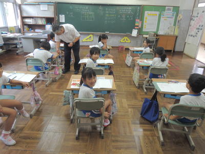 9月12日(木)14:30より、PTA会長さん、関係機関のみなさん、警察官と一緒に通学路危険箇所の点検と要望を行いました。大津市の交通事故の教訓を受けて、交差点の歩道に安全ポールの設置と校庭脇のカーブの所にカーブミラーの設置等を要望しました。