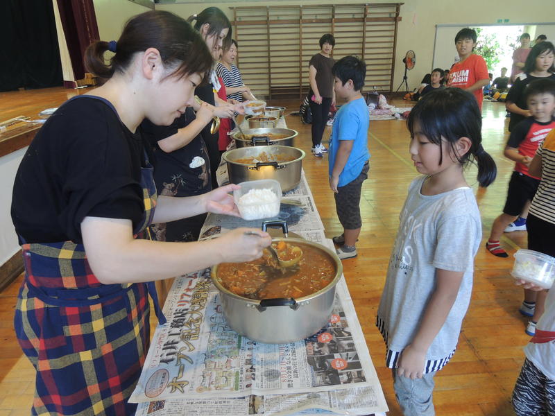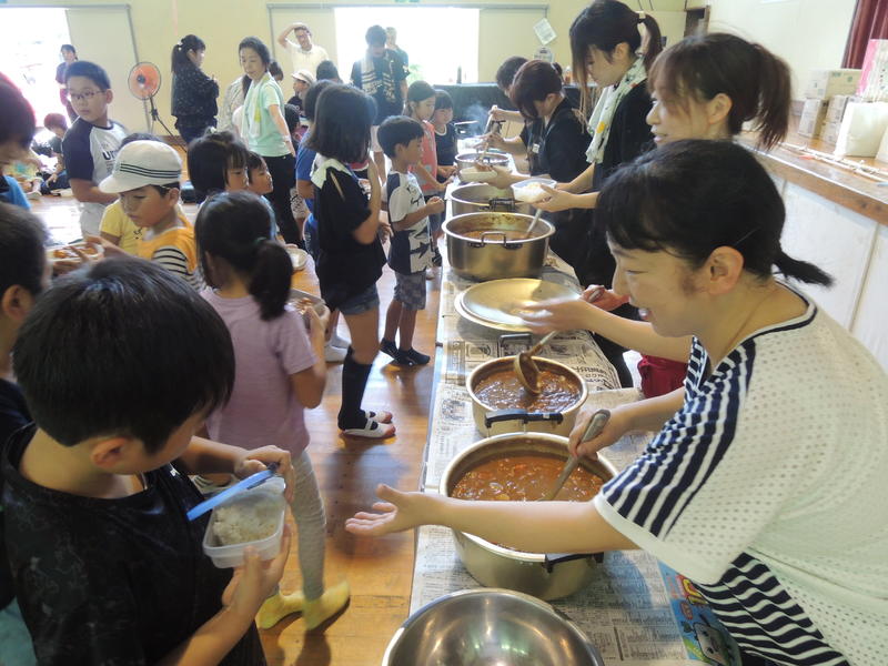 残暑厳しい折、大勢の保護者の皆様の除草作業並びに清掃作業、ありがとうございました。その後の昼食は、役員のお母様がたが愛情込めて作ってくださったカレー(甘口・中辛・辛口)を体育館でいただきました。とっても美味しかったです。「ご馳走様でした!」その後のお楽しみ会は、まるで運動会(パート2)のような盛り上がりでした。景品をお寄せくださった三本菅PTA会長様、阿部児童活動後援会長様、セブンイレブン内郷駅前店オーナー石川副会長様、徳永副会長様、小島門吉商店社長様、内郷ハウス猪狩社長様、馬目米穀店社長様、鈴木米穀店社長様、お心遣い誠にありがとうございました。