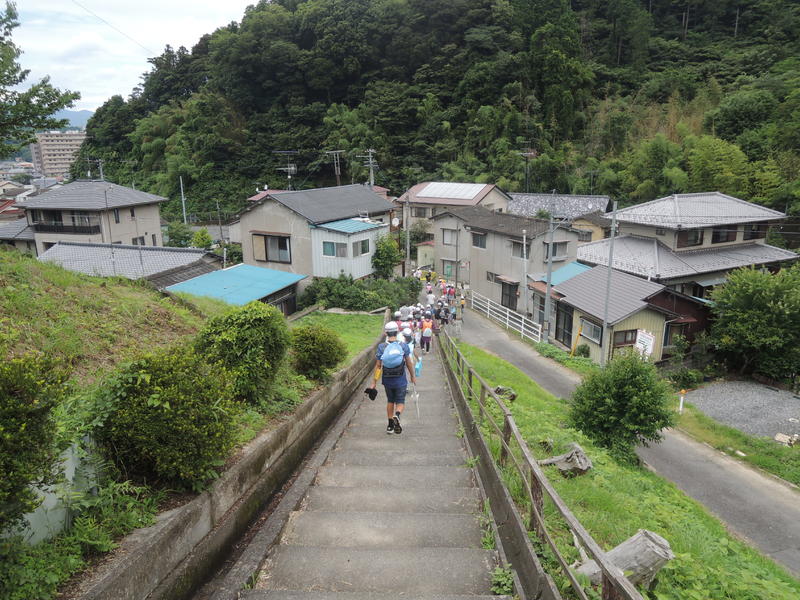 78段の階段を一斉におりていきます。気をつけて、楽しい夏休みを過ごしてください。