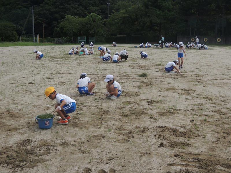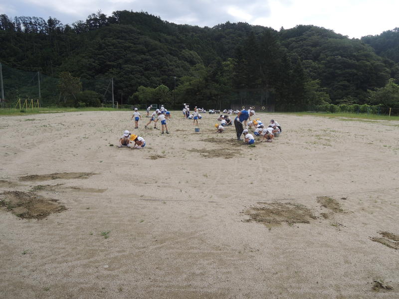 第2学期の始業式が終わったあとに、全校生で外に出て、校庭の除草作業に取り組みました。真剣に取り組んでいただいたお陰で、きれいになりました。