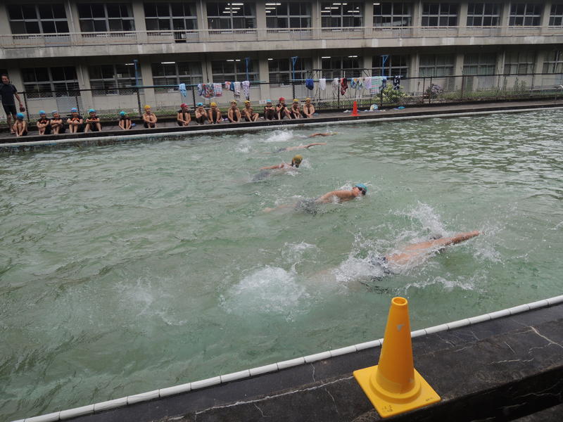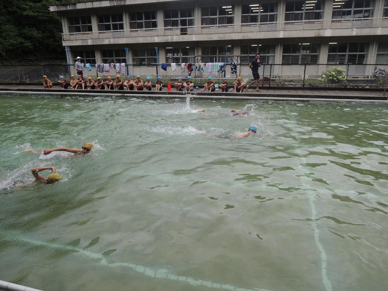 梅雨空でしたが、5・6年生の水泳記録会がんばりました。