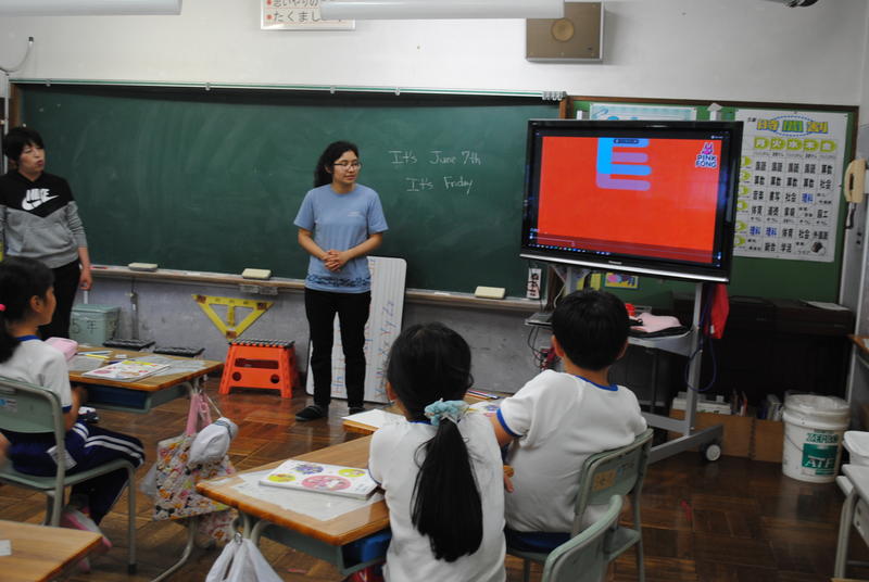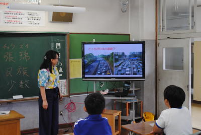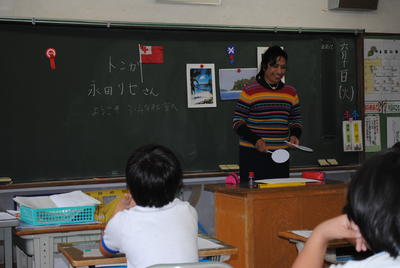 「ニーハオ!」「マーロェレレイ!」「クスナンセーペン!」中国語、トンガ語、ハンガリー語で歌あり、会話あり、子どもたちも国際色豊かな授業に目を丸くしながら、取り組んでいました。