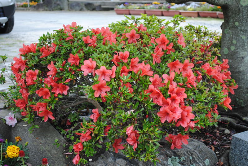 綴小学校の周りは緑に囲まれ、まさに深緑真っ盛りです。今朝は、職員玄関の前にある『さつき』が満開です。