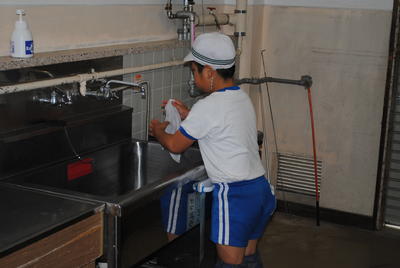 今日は、こっそり配膳室を覗いてみると、棚の上を丁寧に拭き掃除をしていました。ありがとうございました!