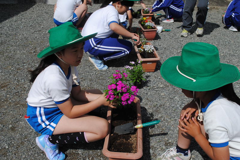 緑の少年団活動の1つとして、サツマイモの苗植えを6年生が行いました。1本1本ていねいに植えて、最後に水をかけました。これから、大切に育てていきます。