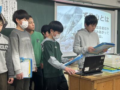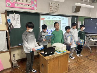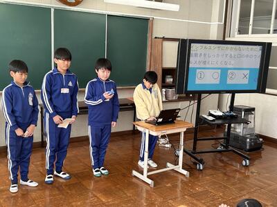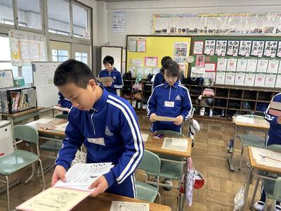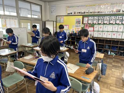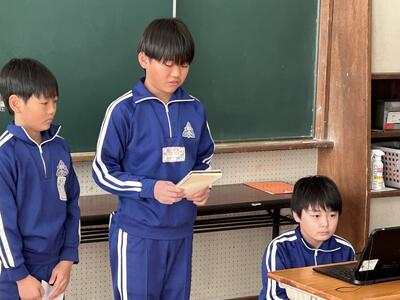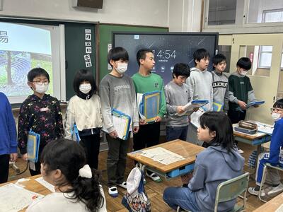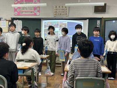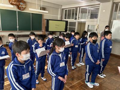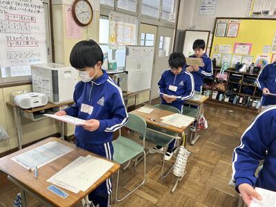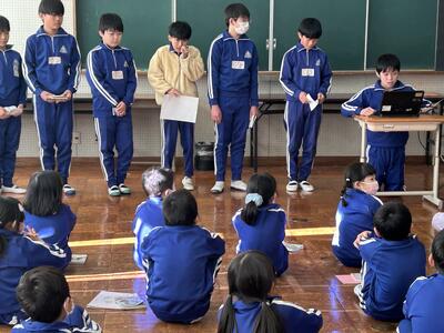 5・6年生は2月12日(水)に総合学習で学んだことを内郷公民館で発表します。今日は内郷公民館長様にお出でいただき、リハーサルを行いました。発表のタイトルは「内郷で学んで」です。12日は14時の発表になります。保護者の方も地域の方もご覧いただけますので、内郷公民館にご参集ください。