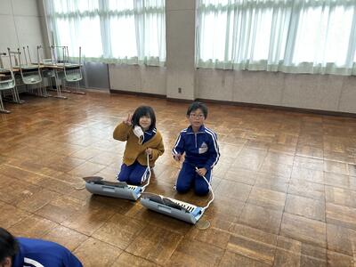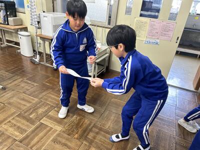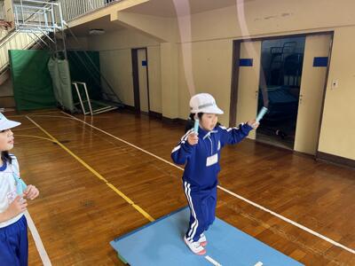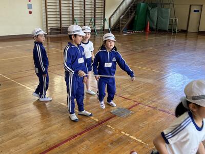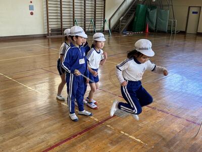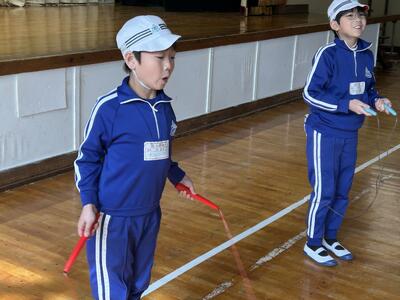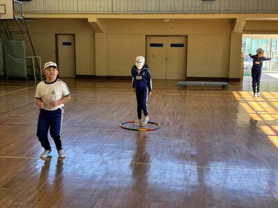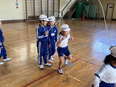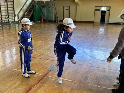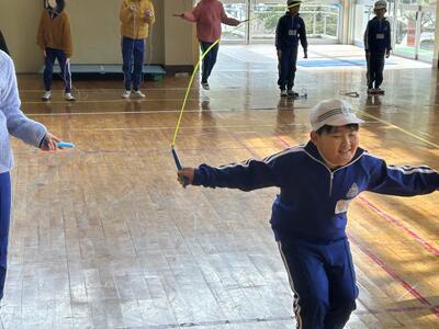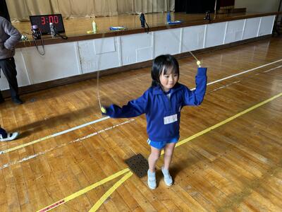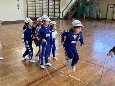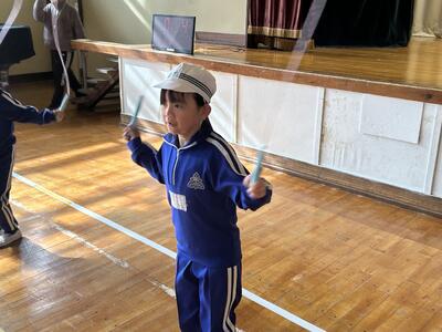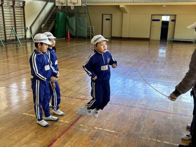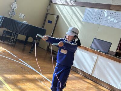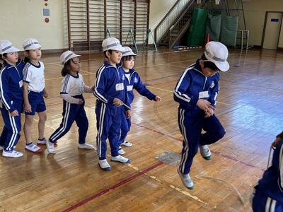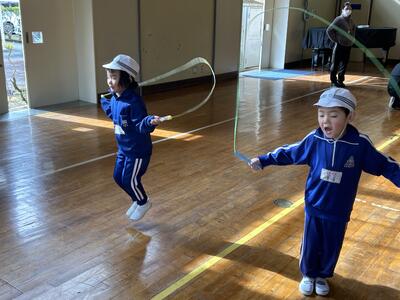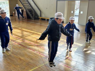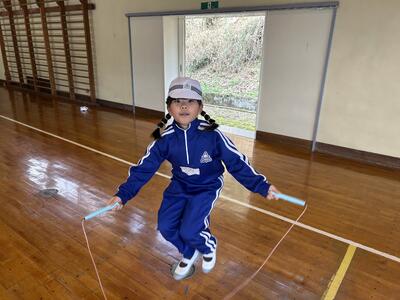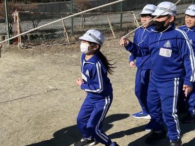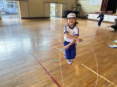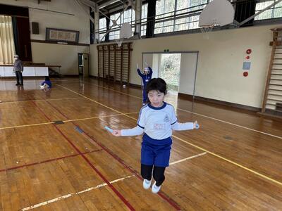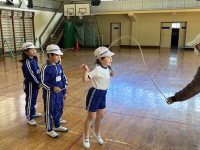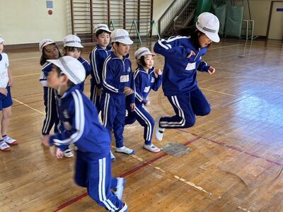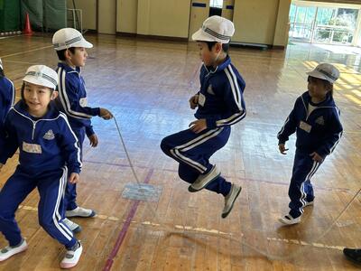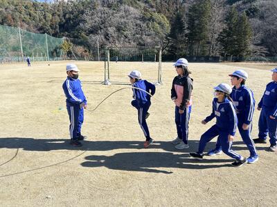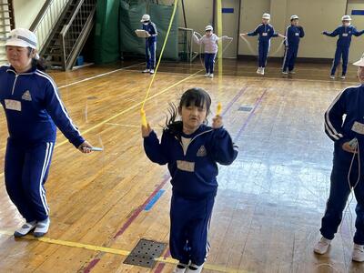 1・2年生は体育で長なわとびを頑張りました。1年生も上達し、上手に跳んでいます。