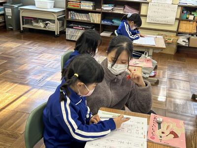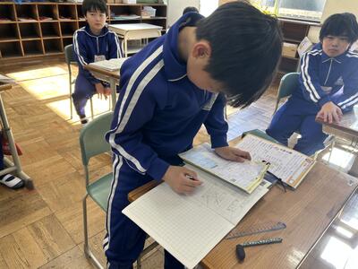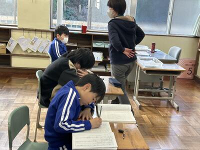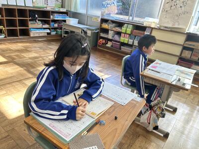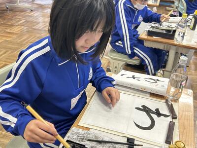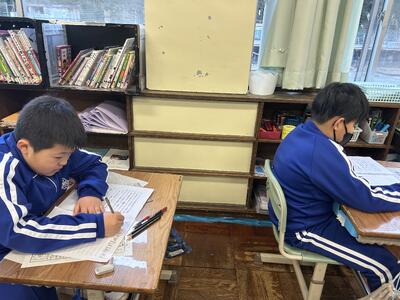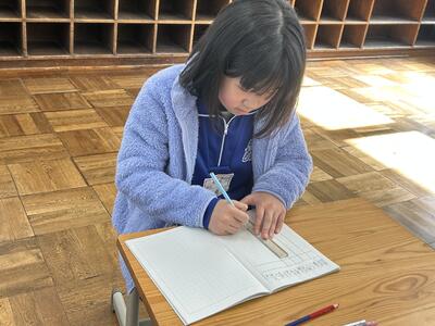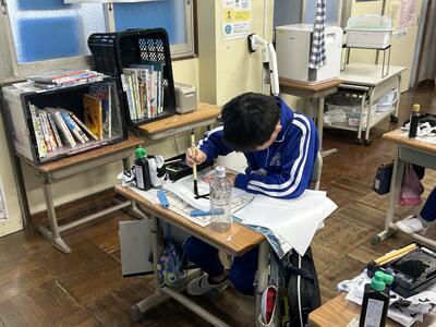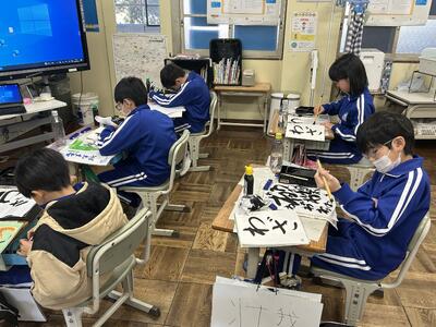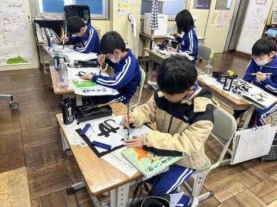 3・4年生は書写を頑張りました。手本とにらめっこしながらの作業です。いい作品できました。