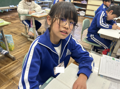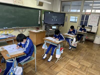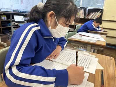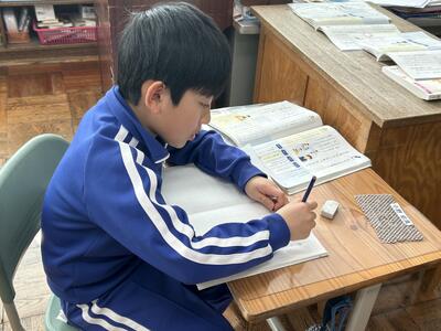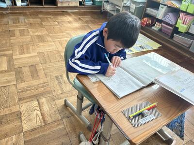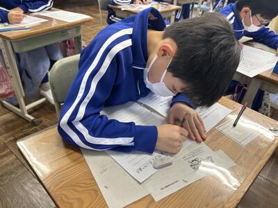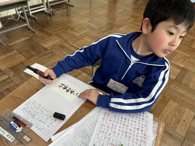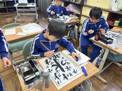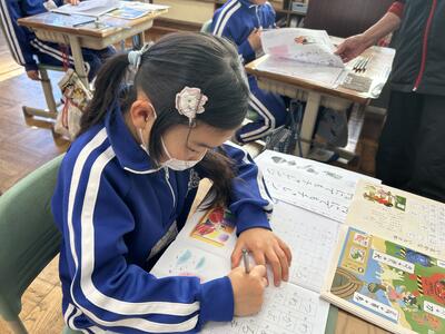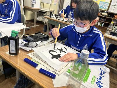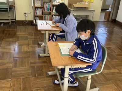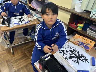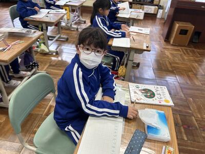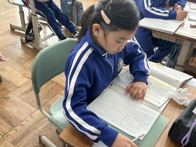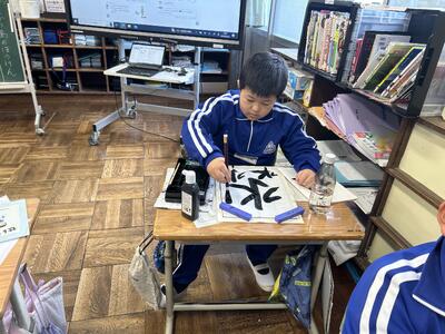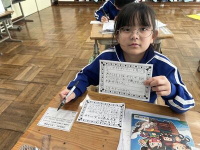 3・4年生は1時間目、書写の授業でした。1字1字、心を込めて丁寧に書きました。緊張感のあるピーンとした空気が張り詰めていました。