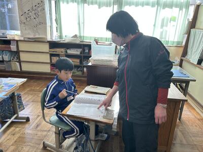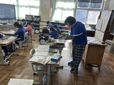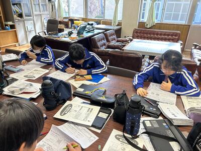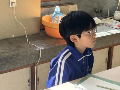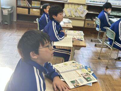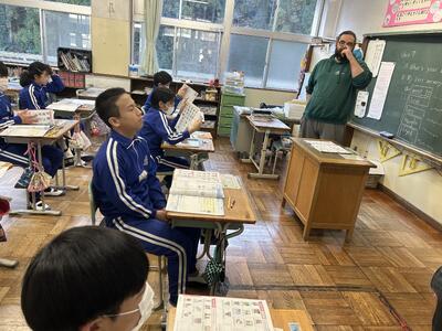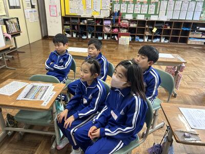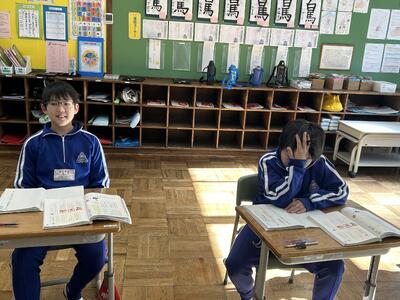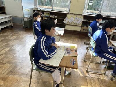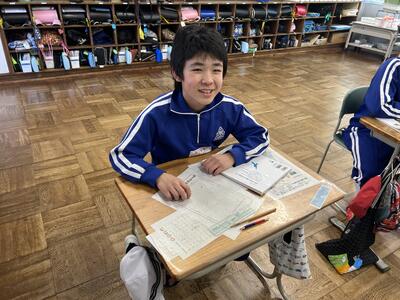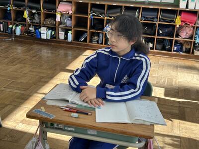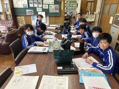 今日は5年生がスチューデント・シティに出かけたので、6年生は学校で留守番です。でもしっかりと朝の会を行い、詩の音読もしっかりできました。今日は特別に校長室でも学習しました。