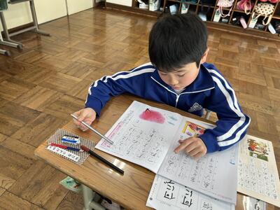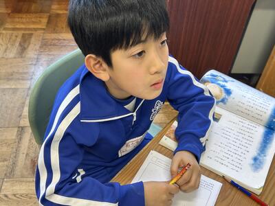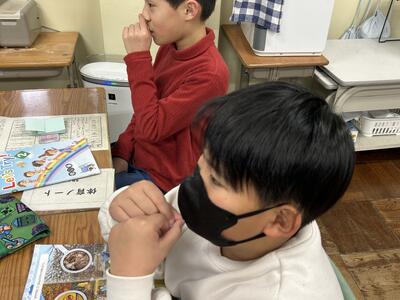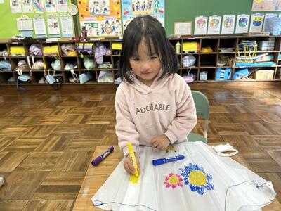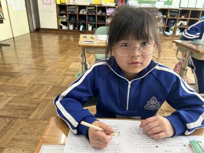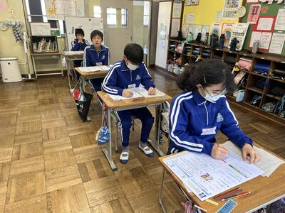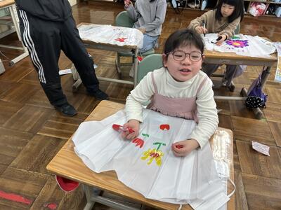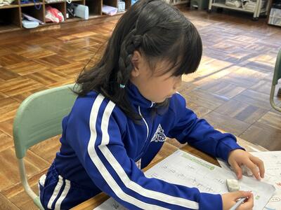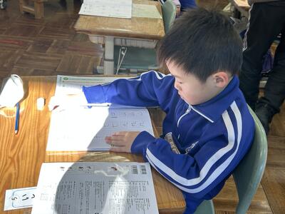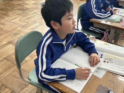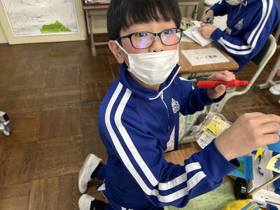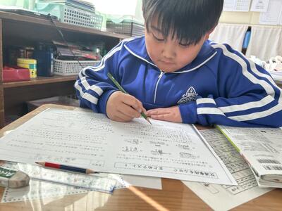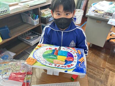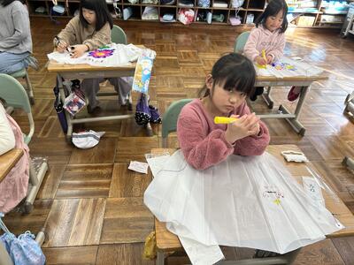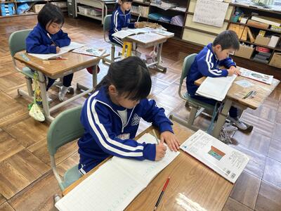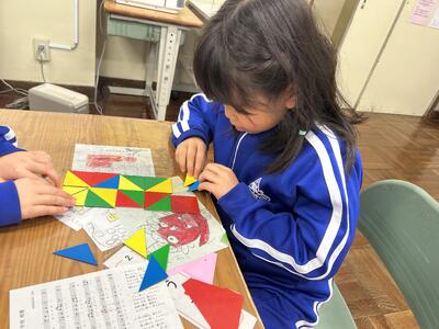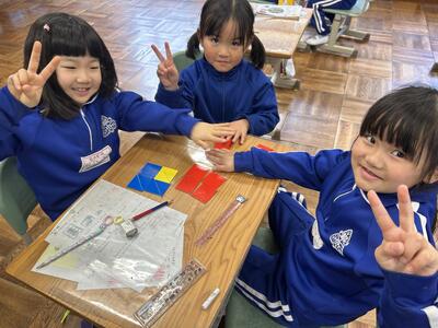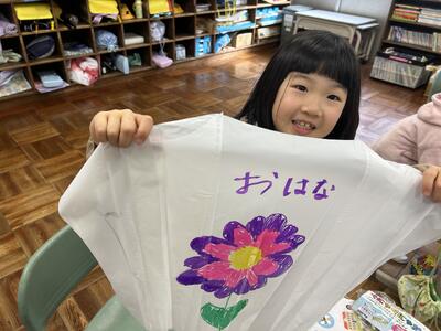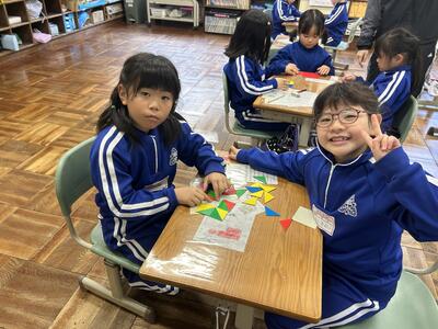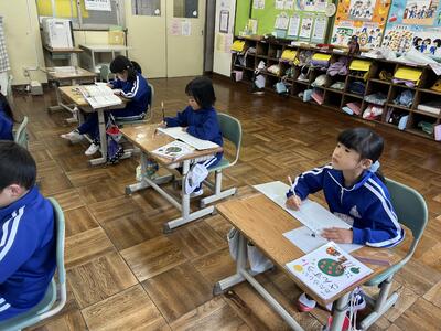 1年生は算数で「形」の学習が始まりました。また午後は凧に絵を描きました。何事にも楽しく元気に取り組んでいます。