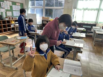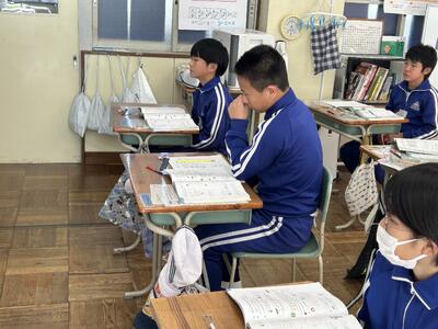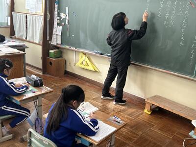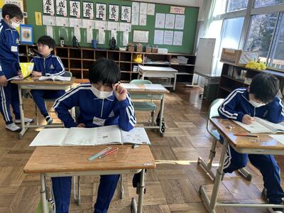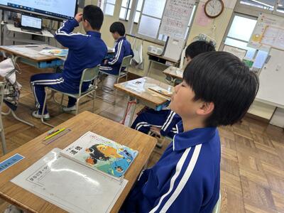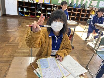 外はいい天気です。綴の空は青空です。昨日が立春だったので、春が近づいている気がします。そのような天気の下で子どもたちは学習に励んでいます。5年生はリコーダーと鍵盤ハーモニカで合奏をしました。曲は「ルパン3世のテーマ」です。リコーダーと鍵盤ハーモニカいい具合に調和して軽やかでした。