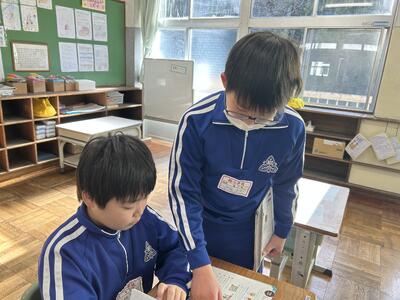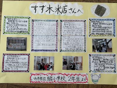 2年生は「友だちのよいところを見つけて手紙で伝える」ということを国語の授業で行っています。また町たんけんのお礼の掲示物が完成しました。