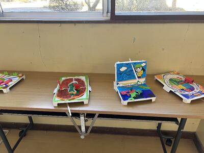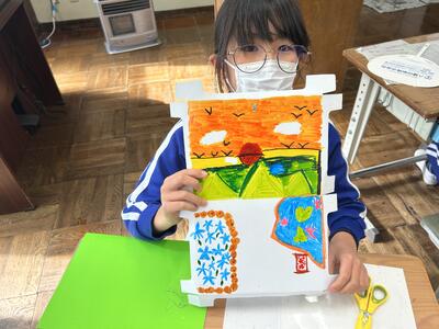 気温が上がらず、寒い一日でしたが、子どもたちは元気に活動しています。1年生の今年度の思い出を描いた絵が完成しました。見事です。