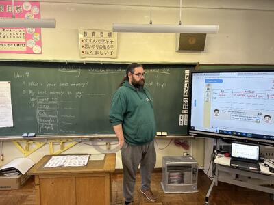 6年生はジョン先生の授業でした。今日は小学校での一番の思い出を英語で話しました。