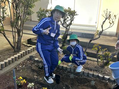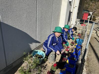 大休憩の様子です。1年生は一輪車デビューをしました。まだうまく乗れませんが、これからの練習できっとすぐに乗れるようになると思います。3・4年生は長なわとびを頑張っていました。みんなで声を出し、協力する姿がすてきです。5・6年生は緑の少年団の活動です。今日はパンジーとシクラメンを植えました。その後、教室に戻り、友だちや先生と楽しいひとときを過ごしました。