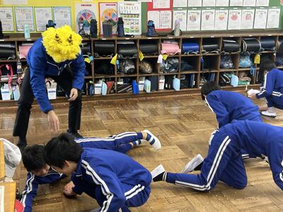 1・2年生の体育の授業の様子です。冬でも体を鍛えることは大切ですね。