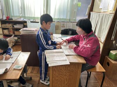 3・4年生は問題にチャレンジです。力試し。先生に採点してもらいました。