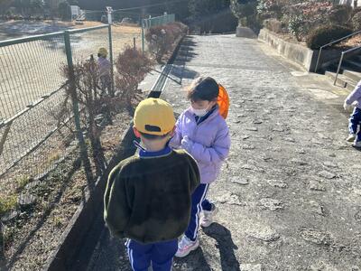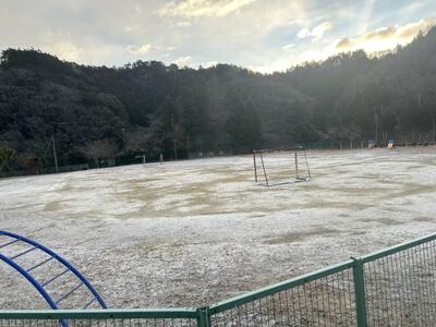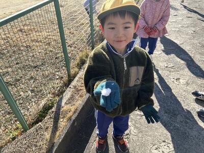 今朝の校庭の様子です。うっすらとですが、校庭に雪が積もりました。さっそく1年生は雪を集めに校庭に出ました。小さな雪玉を作ることができました。小さな雪玉でしたが、雪の冷たさを感じるには十分でした。