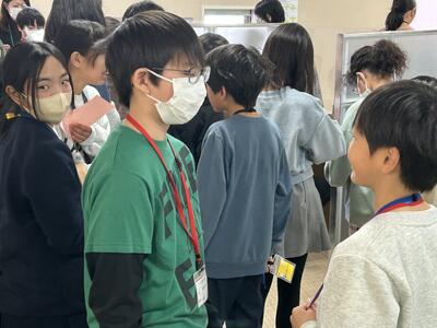 会場には綴小学校の児童も訪れました。綴小以外の上手な作品も鑑賞し、学んでいました。