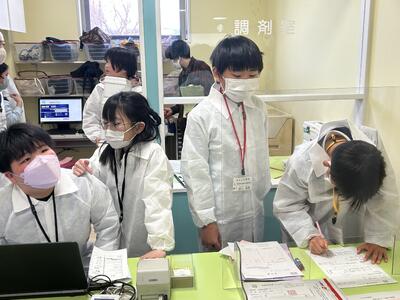 6年生は個体が溶ける実験をしました。アルミニュームを塩酸の中に入れてどうなるかを調べました。