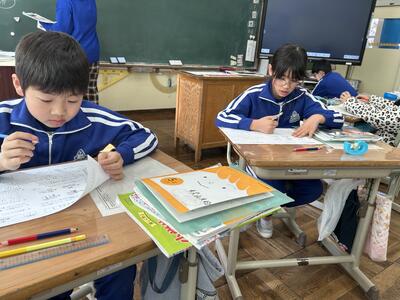 2年生は町たんけんでお世話になった店の方々に礼状を書きました。