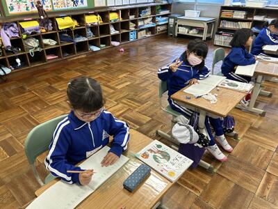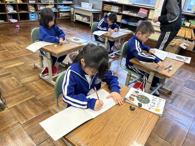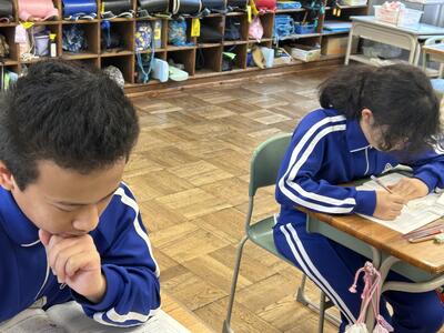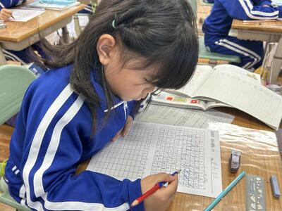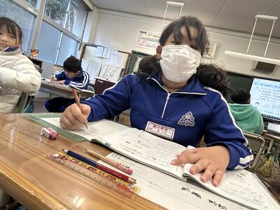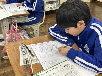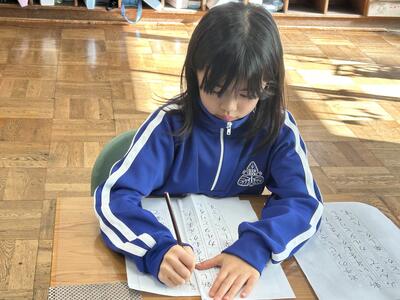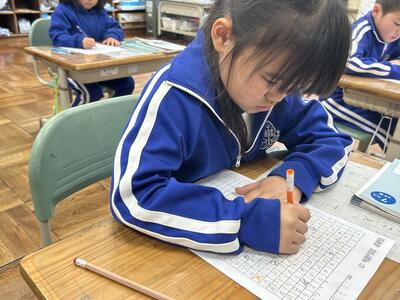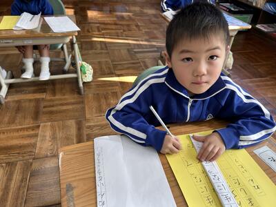 3・4年生は1時間目、書写の授業でした。1字1字、心を込めて丁寧に書きました。緊張感のあるピーンとした空気が張り詰めていました。