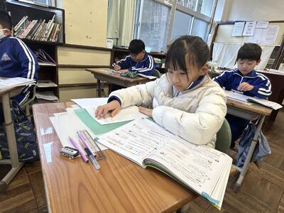 綴の子どもたち、休日明けの月曜日ですが元気に学習しています。感染症が流行しているので、注意していきましょう。