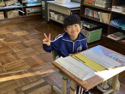 学校の中でも子どもたちは、いい顔で学習に励んでいます。最近、カメラを向けるとピースで答えてくれる子どもが増えました(笑)明日も元気に、いい顔見せてくださいね。綴小は感染症で欠席の児童はいません。