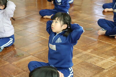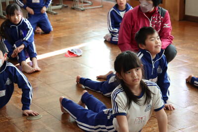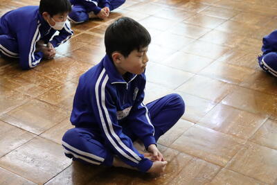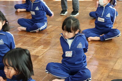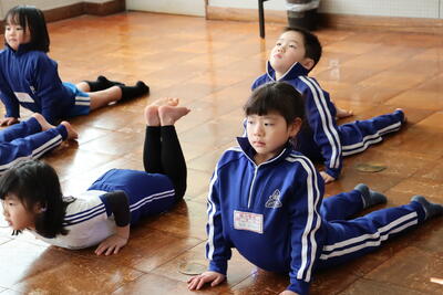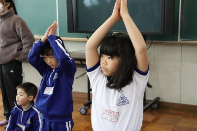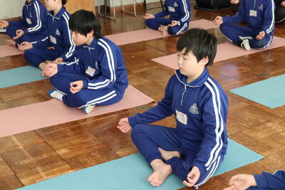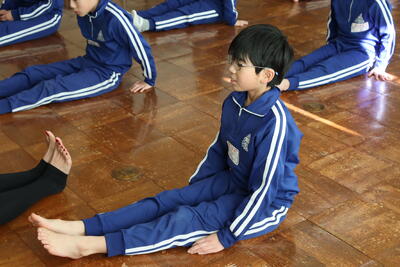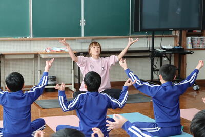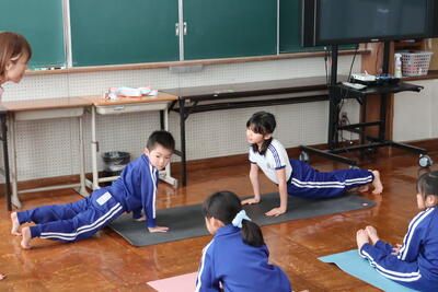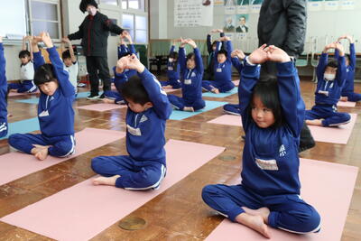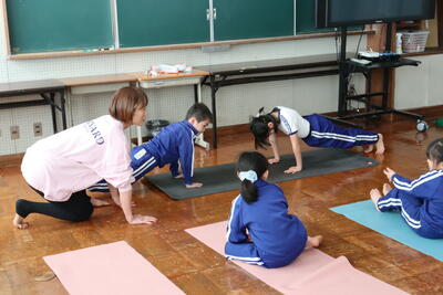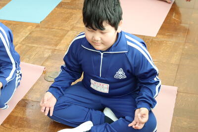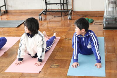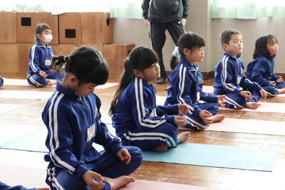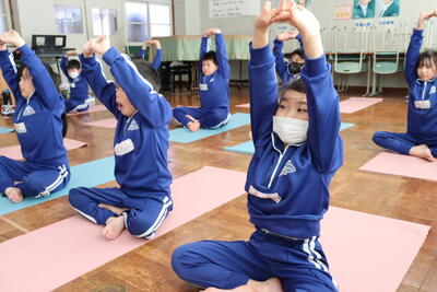 今日は子どもたちが大好きなヨガ教室が行われました。ヨガのインストラクターである遠藤先生に様々なヨガのポーズや呼吸法を教えていただきました。ヨガは寒い時期でもできる運動です。今日教えていただいたことを家でも実践し、健康に留意していきましょう。