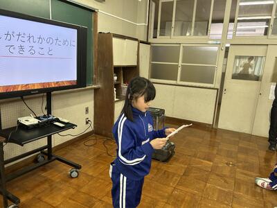 今日の児童集会では健康委員会がカゼや感染症の予防をクイズにして発表しました。今日の発表の内容を忠実に守って健康に過ごしましょう。