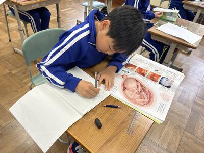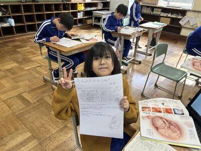 5年生の理科では母の胎内で育つ赤ちゃんの様子を学びました。生まれてきたことが奇跡であることを改めて感じました。