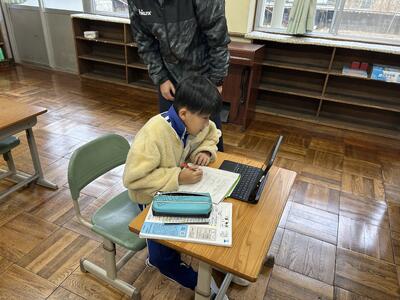 3・4年生はたくさんの計算問題に取り組みました。問題をたくさん解いて力をつけましょう。先生も丁寧にお別指導してくれます。