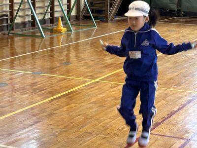 1・2年生は体育の時間、なわとびを頑張りました。三重跳びに挑戦する児童もいました。